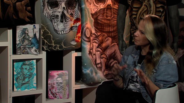 Sie sehen die Eröffnungsrede zur Ausstellung durch die Künstlerin Frau Heier und der Kunsthistorikerin Frau Dr. Bickma...